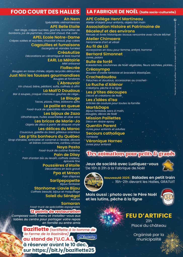 - Restauration sur place, dont notre fameuse Baziflette de l’UCAI (à réserver en ligne ici)